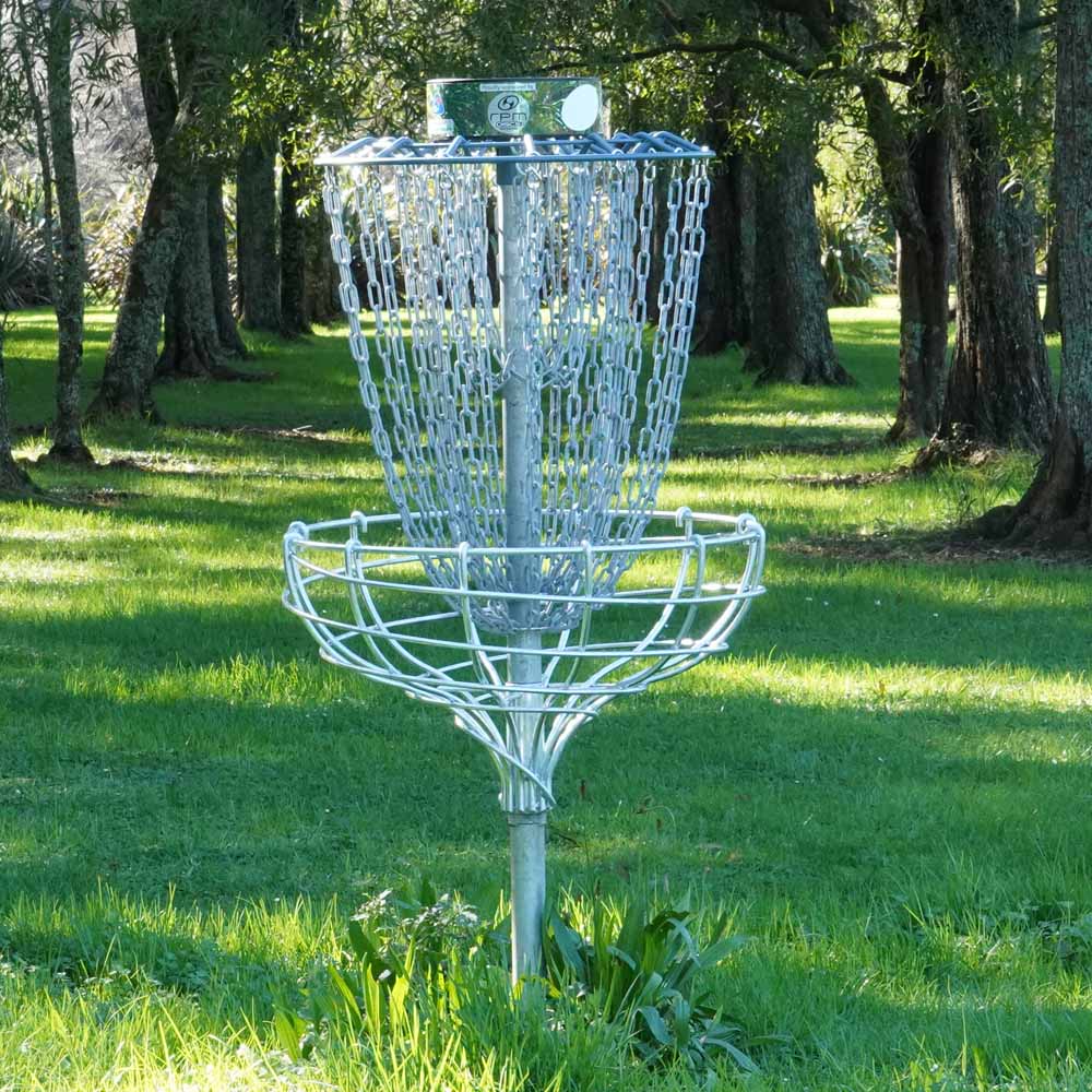 Presenting a flawless synergy of art and practicality, this basket will enhance any disc golf course.